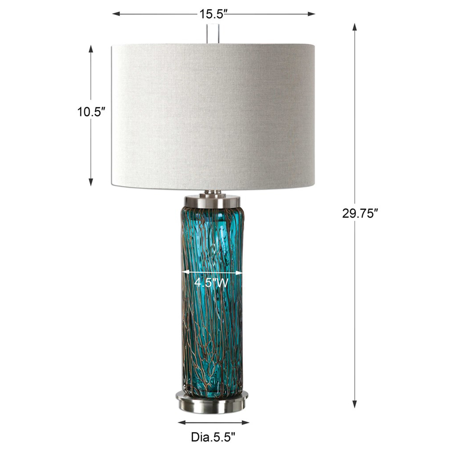 Vidrio azul con detalles de bronce hilado en azúcar y detalles niquelados cepillados.