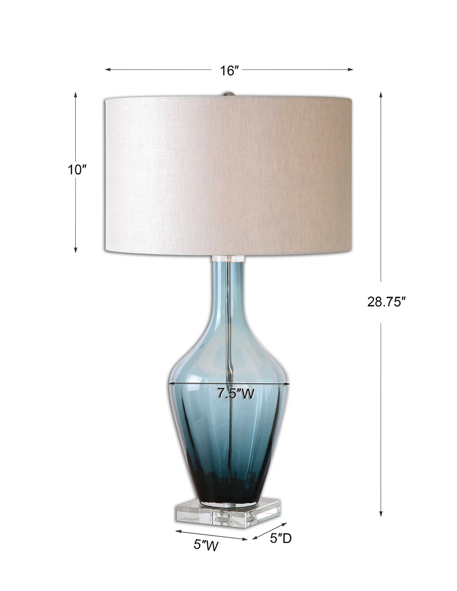Vidrio translúcido azul celeste oscuro acentuado con detalles de cristal.